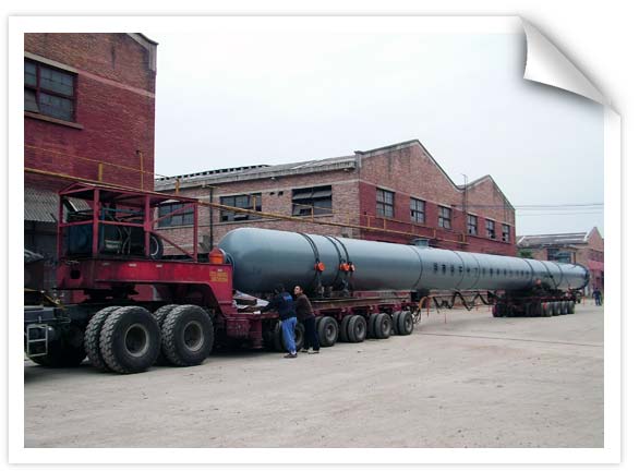 11月21日,宛若“巨龍”的34.6米長的氮氣儲罐從湘東化機啟運陜西咸陽。該產品重110.3T,長34600mm ×Ф 1500 ×84mm,是我公司制造成功的又一超長產品。近幾年,隨著市場的需要,公司調整產品結構,在承攬超長超重產品方面積累了不少經驗,技術水平得到同行業認可,訂單不斷增加,此次近35米長氮氣儲罐的制造成功,再次顯示了公司在制造超長產品方面的市場競爭力。