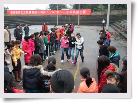 3月7日上午,為慶!叭恕眹H勞動?jì)D女節(jié)99周年,公司女工委員會在燈光球場舉行了女子三人四足接力賽。公司9個(gè)分會都派出了參賽隊(duì)伍,按照預(yù)先確定好的規(guī)則,每個(gè)隊(duì)派出6名隊(duì)員,來回接力六次,以完成賽程時(shí)間長短來確定名次。經(jīng)過激烈的角逐,最后金工分會獲第一名,機(jī)關(guān)分會、容器分會獲第二名,汽輪機(jī)分會、后勤分會獲第三名。(尹雄劍)