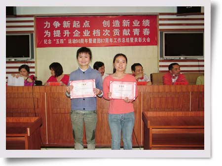 5月4日上午,公司團委在三樓培訓室召開了紀念“五四”運動90周年暨建團87周年工作總結表彰大會。團委副書記李攸琴在會上作了題為《立足新起點 創造新業績 為提升企業檔次貢獻力量》的工作報告。公司領導林德晃、姜衡陽、辦公室主任李建華、工會副主席魏紀勝、各黨支部書記以及各團支部委員、青年代表等50余人參加了會議。 團委副書記李攸琴的工作報告總結了2008年團委工作,同時對2009年團委工作作了部署。 黨委書記林德晃在會上作了重要講話,對廣大青年、團員提出了要求:一是要加強學習、勇于創新;二是要立足崗位、扎實工作;三是要團結奮進、誠實做人。同時對團委工作也提出了嚴格要求。 會議號召廣大青年團員,積極探索、開拓創新、勇于奮進,為企業發展再立新功、再創佳績。 會議表彰了優秀團干2名,優秀團員8名,青年技術能手8名。(尹雄劍)