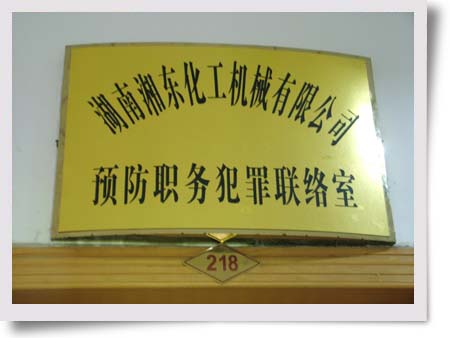 5月5日上午,攸縣檢察院領導到公司為“預防職務犯罪聯絡室”揭牌。 多年來,公司堅持教育中層以上干部和相關人員,預防職務犯罪。今年,公司聘請了縣檢察院瀆職科領導到公司授課培訓,讓廣大干部和相關人員熟悉相關法律知識,從而實現了廣大干部按原則辦事,為湘東化機發展作貢獻的目標。近十年來取得了很好的效果,公司未出現一例職務犯罪現象。