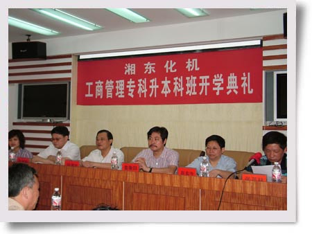 5月15日上午,公司在三樓培訓室舉行了工商管理專科升本科班開學典禮。南華大學繼續教育學院黨委書記、副教授胡滿生,經濟管理學院院長、教授肖東生,機械工程學院黨委書記、副教授彭新和,院辦主任黃澤民,招生辦主任陳夕軍,公司副總經理姜衡陽及人資處領導和41位學員參加了開學典禮。 公司為全面提高員工素質、提升企業檔次,多年來一直堅持與南華大學聯合辦學,走自己培養人才的道路,以適應企業發展需求。去年聯合開辦的機械制造專業專升本班的29名學員都以優異成績全部畢業,拿到了本科文憑。今年初就制定了工商管理專業辦班計劃,經過4個月的籌備,今天正式開學了。 南華大學領導胡滿生、肖東生、彭新和都在會上講了話,他們介紹了南華大學、南華大學經濟管理學院、機械工程學院的辦學情況,同時對辦好工商管理專升本班提出了目標和要求。 副總經理姜衡陽在會上明確了辦班的宗旨和指導思想,對如何辦好專升本班提出了要求。他說,全體學員要珍惜學習的機會,真正學到知識、學到本領。同時要正確處理好工作和學習的關系,做到工作、學習兩不誤、兩促進,把學到的知識應用到工作中、實踐中,為把湘東化機建設的更加美好作出應有的貢獻。(尹雄劍)