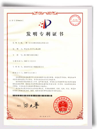 2009年6月10日,中華人民共和國國家知識產權局授予湖南湘東化工機械有限公司“一種三層合金軸承的離心鑄造方法”發明專利證書,專利號為ZL 2005 10031308.3。 本發明公開了一種三層合金軸承的離心鑄造方法,旨在提供一種操作簡便易行、技術先進、粘合強度可靠的鑄造方法,采用此鑄造方法生產的三層合金軸承,不僅銅合金層的厚度可根據設計要求確定,而且內應力較小,銅層與鋼套也不易脫殼。圖為發明專利證書。(王慧卉)