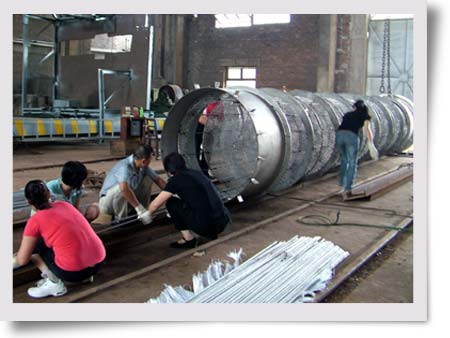 湖南湘東化工機械有限公司為天津渤海化工有限責任公司天津堿廠制造的煤氣換熱器等8臺設備,由于焊接技術要求高,焊接工作量是平常焊接的2.5倍,而且2萬根鋼管要穿,4萬個鋼管口要焊接,時間緊任務重,于2009年8月14日開始,公司上下齊心協力搶任務,全體機關人員分批下車間穿管子,做到本職工作和生產任務兩不誤。