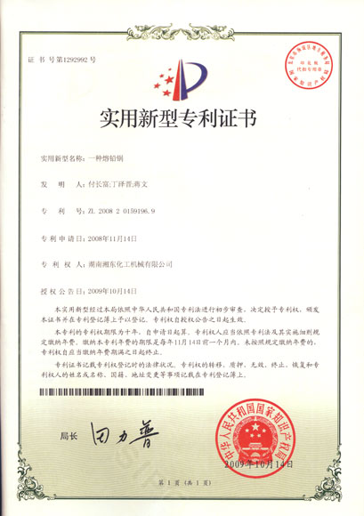 2009年10月20日公司收到了國家知識產權局專利局于2009年10月14日頒發的“一種熔鉛鍋”實用新型專利證書,這是公司今年獲得的又一項專利。 該實用新型專利公開了一種結構致密度均勻、鍋體的厚度一致,鍋體較薄、重量輕、傳熱快,能有效地提高冶煉效率,節約能源,降低產品成本,且不易產生裂紋及變形,易維修、成本低的熔鉛鍋。(尹雄劍)