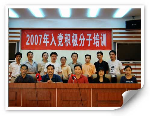 近日公司組織部舉辦了2007年入黨積極分子培訓班。公司黨委書記劉建新在培訓班上做了講話,要求參加學習的16名新生力量樹立正確的人生觀、世界觀、價值觀,不斷加強學習,從嚴要求自己,創新工作方法,努力掌握技術,在平凡的工作崗位上做出不平凡的事,爭取早日加入中國共產黨。