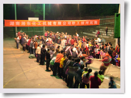 2010年4月23日晚,湖南湘東化工機械有限公司舉行男女職工混合拔河比賽,旨在培養員工的團隊精神,營造和諧企業團隊,增強企業的凝聚力和戰斗力。 多年來,湘東化機注重加強企業精神和企業文化建設,豐富廣大職工業余文體生活,堅持每季度至少舉行一次文體活動,投資20余萬元資金購置健身器材并在生活區建設3個健身場所,增強職工體質,充分調動職工工作熱情。 拔河比賽在一片熱鬧聲中拉開了帷幕,8個隊120名隊員參加比賽,經過激烈的角逐,容器分會取得了桂冠。(王慧卉)