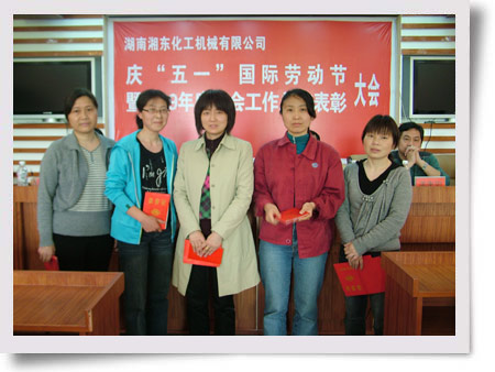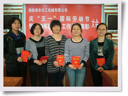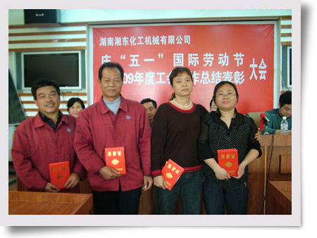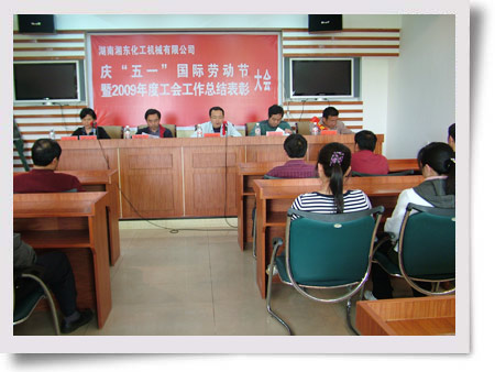2010年4月29日,湖南湘東化工機械有限公司召開2009年度工會工作總結大會,熱烈慶祝五一國際勞動節。 會上,黨委書記、公司常務副總經理兼工會主席林德晃作了題為《堅定信心,共克時艱,攜手再創新輝煌》的報告,充分地肯定了工會組織2009年的工作成績,同時對2010年提出了新的工作要求。他要求工會組織應多開展文體活動、勞動競賽和技能大賽等活動,豐富職工業務生活,充分發揮黨委、行政聯系職工群眾的橋梁和紐帶作用,進一步加強職工民主管理,全面提高職工素質,維護職工合法權益,落實困難職工幫扶職責,加強工會組織自身建設,不斷創新,進一步提高管理水平和服務意識,為公司的建設和發展、為提高職工的勞動積極性和增強企業凝聚力努力作出新貢獻。 最后,黨委委員、公司副總經理姜衡陽宣讀了《關于表彰2009年度工會先進集體和個人的決定》,對1個先進工會分會汽輪機分會,單雪山等20名工會積極分子進行了表彰,同時號召全體員工以先進為榜樣,學先進,爭先進,為公司發展建功立業。(王慧卉)