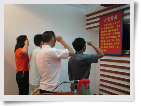 7月1日下午,湖南湘東化工機械有限公司舉行新黨員入黨宣誓儀式,新黨員在黨旗下莊嚴(yán)宣誓,“我志愿加入中國共產(chǎn)黨。。。。。!。目前,湘東化機共有黨員598人,其中,具備大專以上文化黨員136人,生產(chǎn)一線黨員110人。 湘東化機始終把基層黨組織建設(shè)作為組織工作重點,圍繞“深入學(xué)習(xí)實踐科學(xué)發(fā)展觀,為黨旗增輝,促進(jìn)公司又好又快發(fā)展”這一主題,以慶祝黨的生日為契機,組織開展 “爭先創(chuàng)優(yōu)”等形式多樣的活動,鼓勵廣大黨員積極投身于公司的各項工作,進(jìn)一步形成學(xué)榜樣、趕先進(jìn)的濃厚氛圍。 在新黨員入黨宣誓大會上,廣大黨員表示:要牢記黨的宗旨,保持共產(chǎn)黨員先進(jìn)性,繼承和發(fā)揚黨的優(yōu)良傳統(tǒng)和作風(fēng),不斷提高自身的思想覺悟,團(tuán)結(jié)一心,努力工作,更好地發(fā)揮黨員的先鋒模范作用,為創(chuàng)造公司美好的明天而奮斗。湘東化機黨委書記林德晃殷切希望廣大黨員要時時刻刻嚴(yán)格要求自己,刻苦學(xué)習(xí),愛崗敬業(yè),積極進(jìn)取,甘于奉獻(xiàn),以滿腔的熱血,付諸于積極行動,為企業(yè)的建設(shè)發(fā)展努力奮斗,以自己無悔的青春向黨組織交上一份滿意的答卷。(王慧卉)