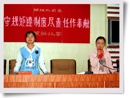 在黨的十七大隆重召開之際,公司團(tuán)委以獨(dú)特的方式向黨獻(xiàn)禮,開展了一系列以“守規(guī)矩,遵制度,盡責(zé)任,作奉獻(xiàn)”為主題的教育實(shí)踐活動(dòng)。通過演講比賽、黑板報(bào)競賽與讀書征文等豐富多彩的活動(dòng),使踐行社會(huì)主義榮辱觀在青年中蔚然成風(fēng)。公司團(tuán)委通過用社會(huì)主義核心價(jià)值體系教育青年、用良好的行為準(zhǔn)則引導(dǎo)青年、用高尚的品德操守激勵(lì)青年,團(tuán)組織的吸引力、凝聚力、戰(zhàn)斗力明顯增強(qiáng)。為響應(yīng)黨的十七大勝利閉幕,我們?nèi)w團(tuán)員青年更應(yīng)以崇高的理想信念為核心、以倡導(dǎo)社會(huì)文明新風(fēng)為目標(biāo)、以了解公司各項(xiàng)規(guī)章制度為工作準(zhǔn)則、以愛崗敬業(yè)、積極投入生產(chǎn)經(jīng)營為己任,為完成全年生產(chǎn)目標(biāo)做出應(yīng)有的奉獻(xiàn)。