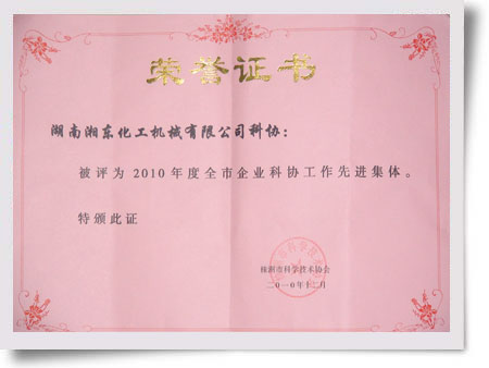 近日,自株洲市科學技術協會傳來消息,湖南湘東化工機械有限公司科協被評為2010年度全市企業科協工作先進集體。(王慧卉)