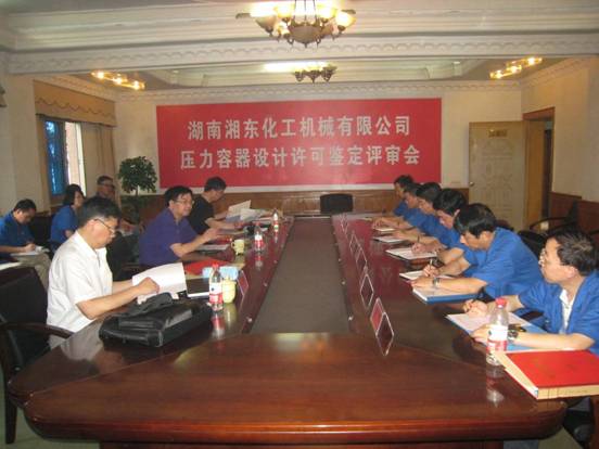 2014年6月11日-13日,中國特種設備檢測研究院一行5人對我公司A1/A2/A3級壓力容器設計資格進行現場鑒定評審,評審組由組長錢英豪、組員梁琳、韓建新、葉勇組成,湖南省質量技術監督局特種設備局陳莎莉對整個評審過程進行監督。