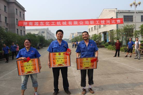 為豐富員工業(yè)余文體生活,培養(yǎng)員工間團(tuán)隊(duì)精神,我公司于2014年6月14日組織了職工拔河比賽。比賽于上午8點(diǎn)開始,共有機(jī)關(guān)支部、技術(shù)支部、探傷支部、容器支部、汽輪機(jī)支部、球罐支部等6支隊(duì)伍參加。比賽開始,只聽見哨聲、吶喊聲、鑼聲、歡呼聲聲入耳,經(jīng)過(guò)5輪的緊張激烈的角逐,容器支部一路過(guò)關(guān)斬將,以不敗的戰(zhàn)績(jī)力壓群雄,在拔河比賽獲取第一名,汽輪機(jī)支部、球罐支部分別榮獲第二、第三名。