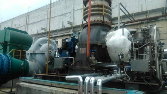 我公司于2013年8月承攬了赤天化集團貴州金赤化工有限責任公司型號為N2.25-0.5/0.012的驅動循環水泵用汽輪機一臺/套的改造項目。該項目是貴州金赤化工的節能改造項目,計劃利用甲醇工段富產的40噸左右的壓力為0.5Mpa(g)的飽和蒸汽用冷凝式汽輪機替換原有循環水廠6臺單臺功率為2250KW電機驅動的循環水泵的其中兩臺。